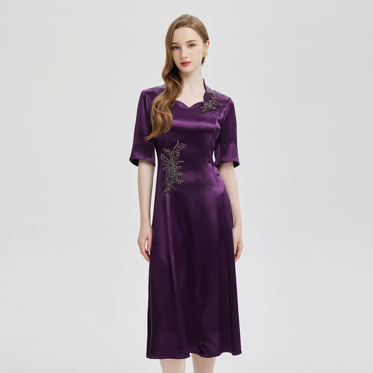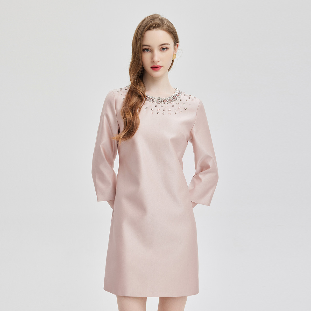 轻奢名媛风华丽钉珠H身型显瘦质面料柔软2024七分袖连衣裙 375967