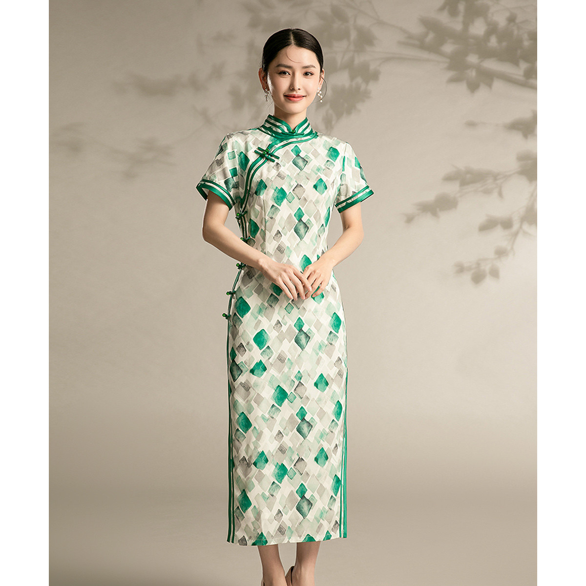 新中式旗袍格子夏季复古民国年轻少女气质改良国风旗袍 889567