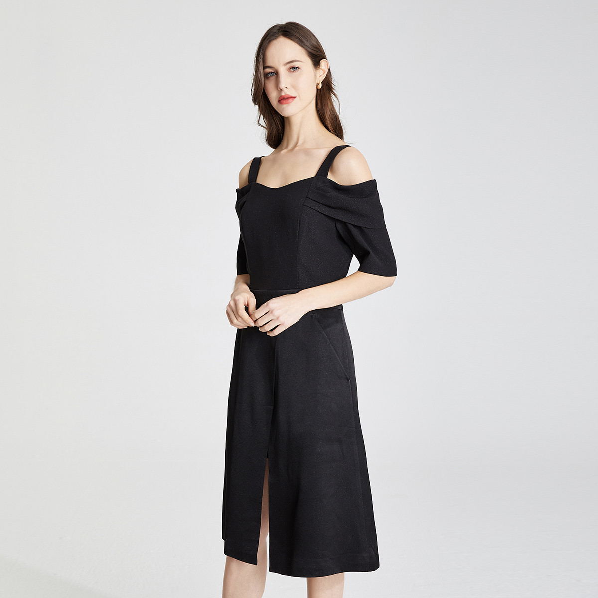 春夏优雅露肩性感时尚收腰A型减龄款连衣裙 118111