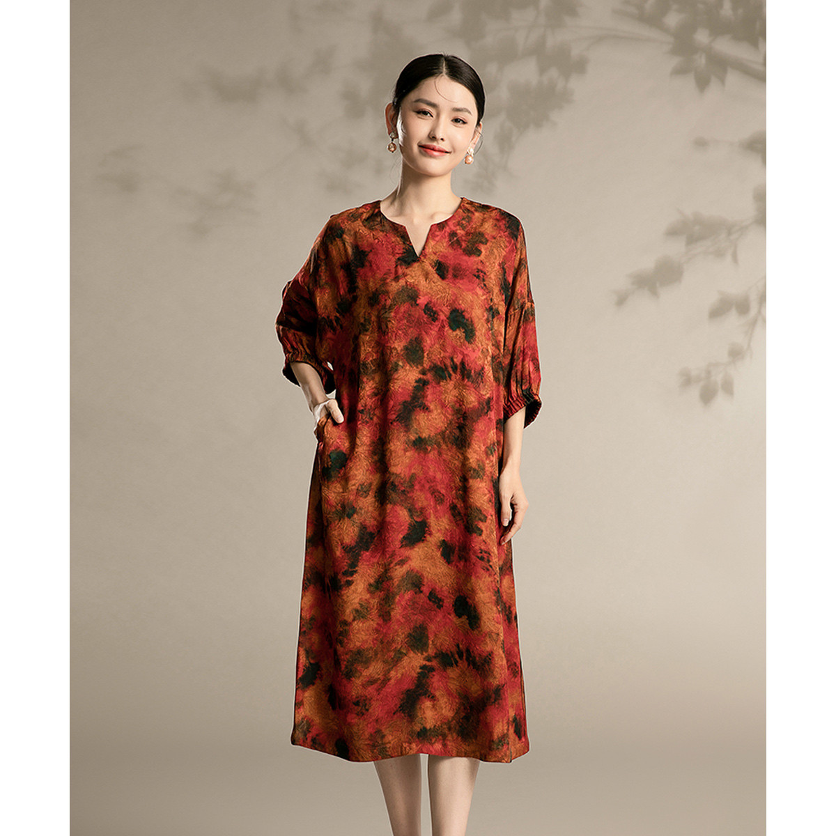 夏季改良版连衣裙洋气印花舒适宽松裙中年中国风裙子 496095