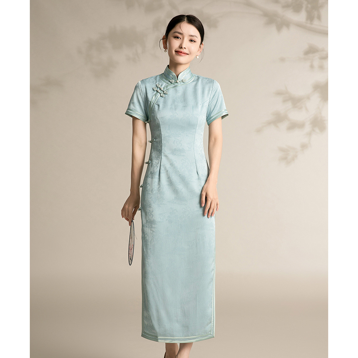 新中式复古民国风提花旗袍优雅年轻款连衣裙 050591