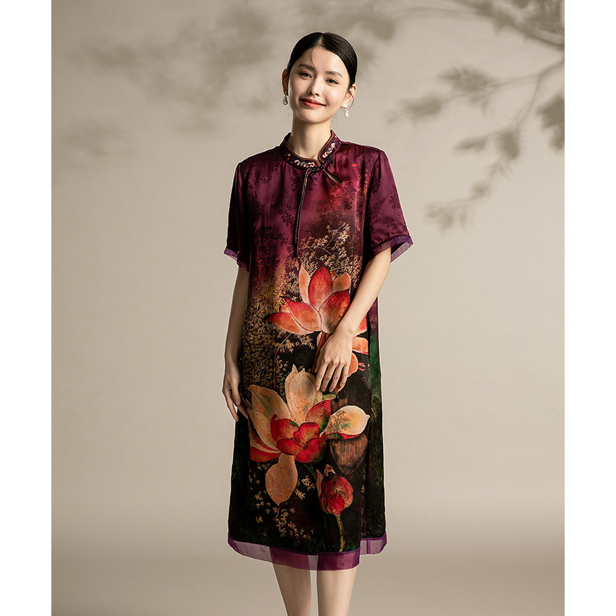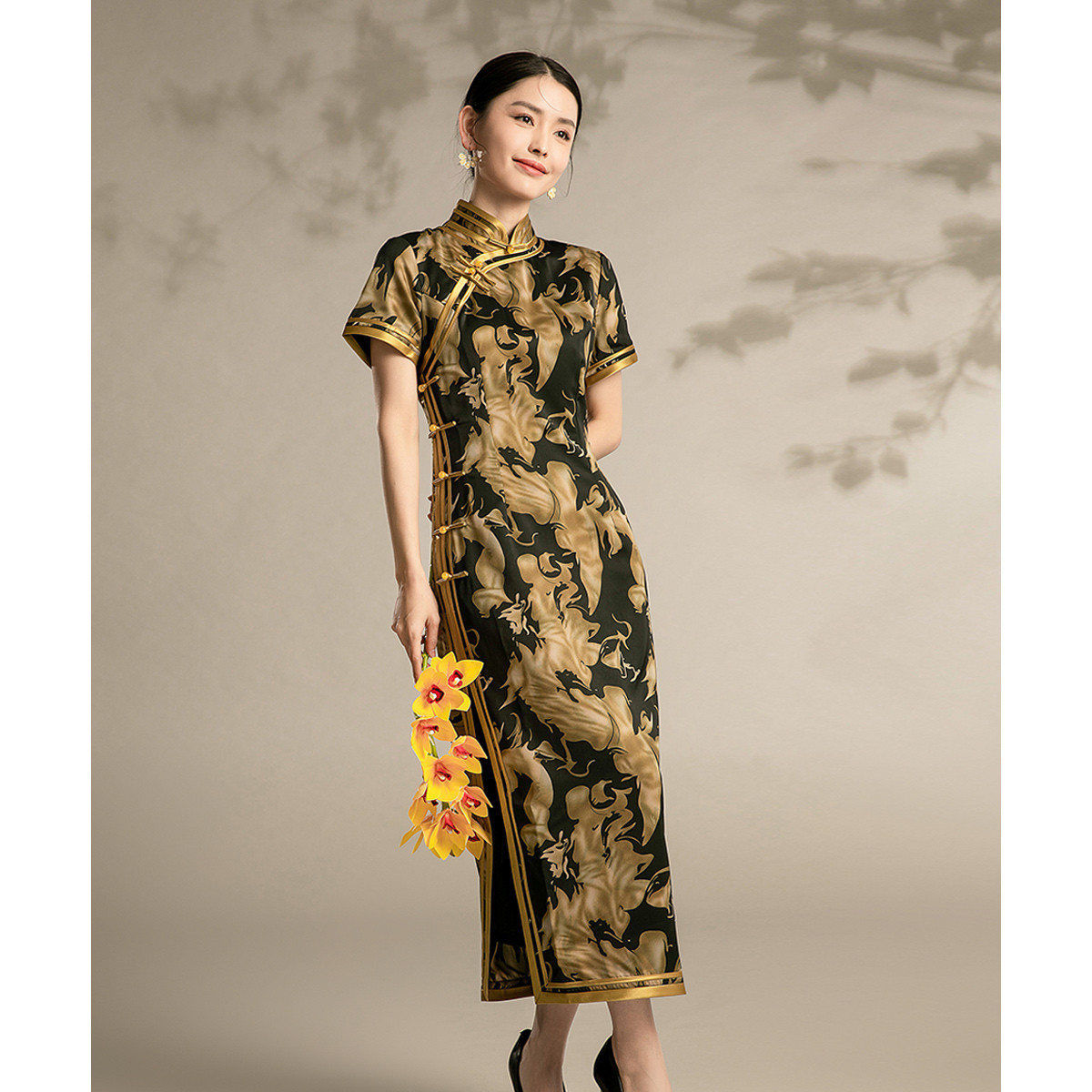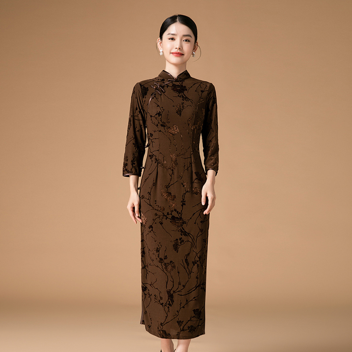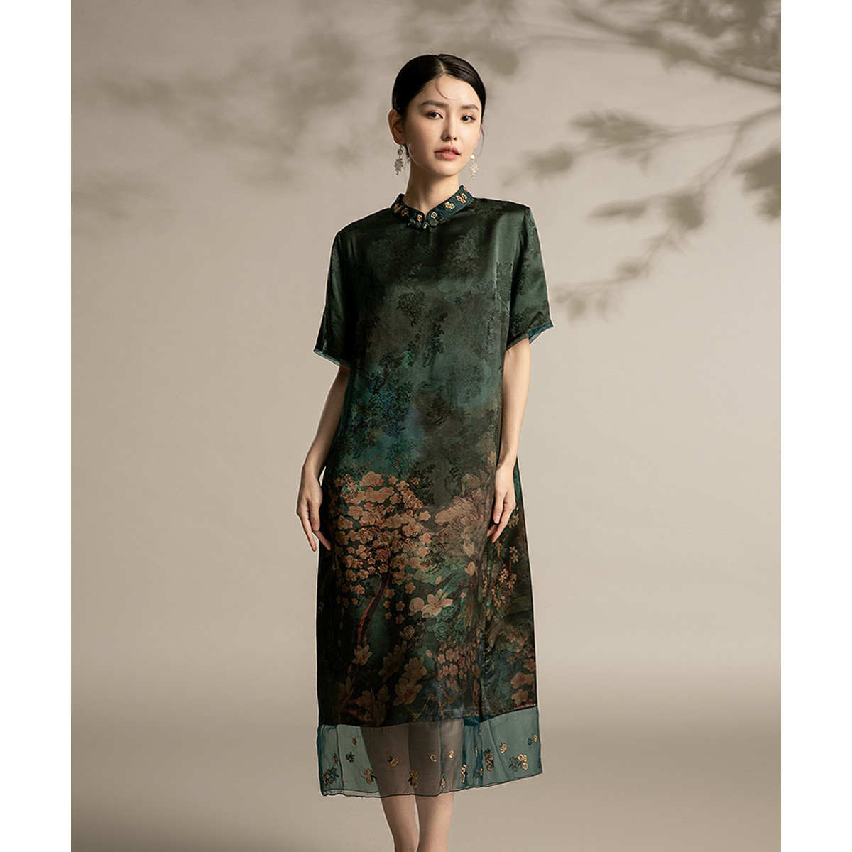 复古旗袍改良中国风年轻款短袖高端气质花朵长款秋款 044895