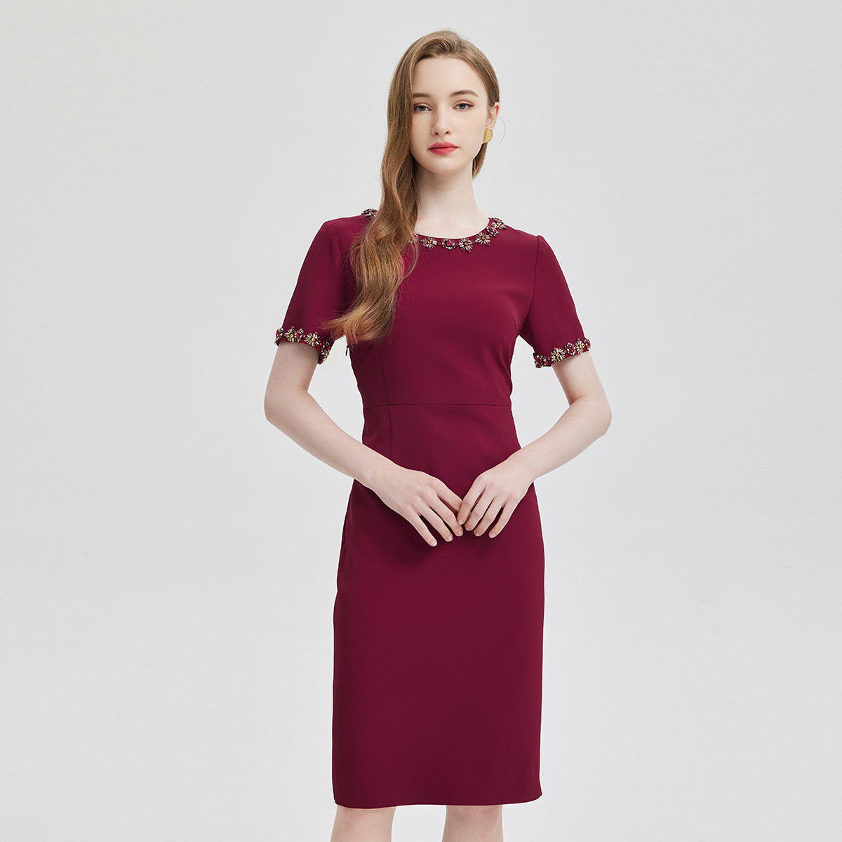 精致奢华钉珠礼服圆领收腰显瘦大方贵气十足宴会连衣裙 540127