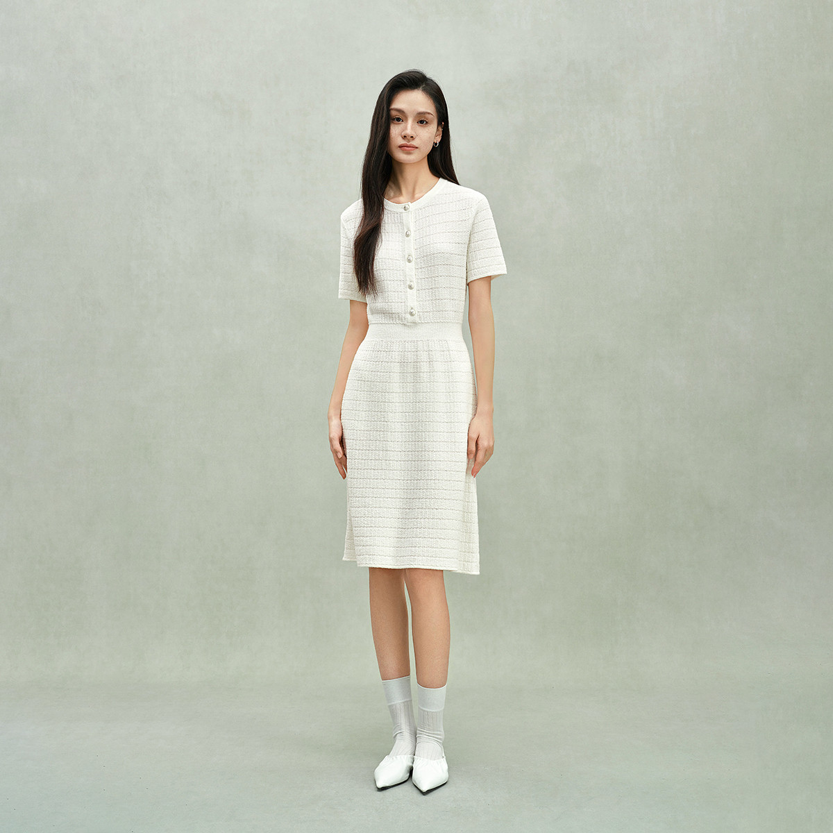 限定系列OCH.春装 小香风格子小香风白裙气质针织连衣裙 412111