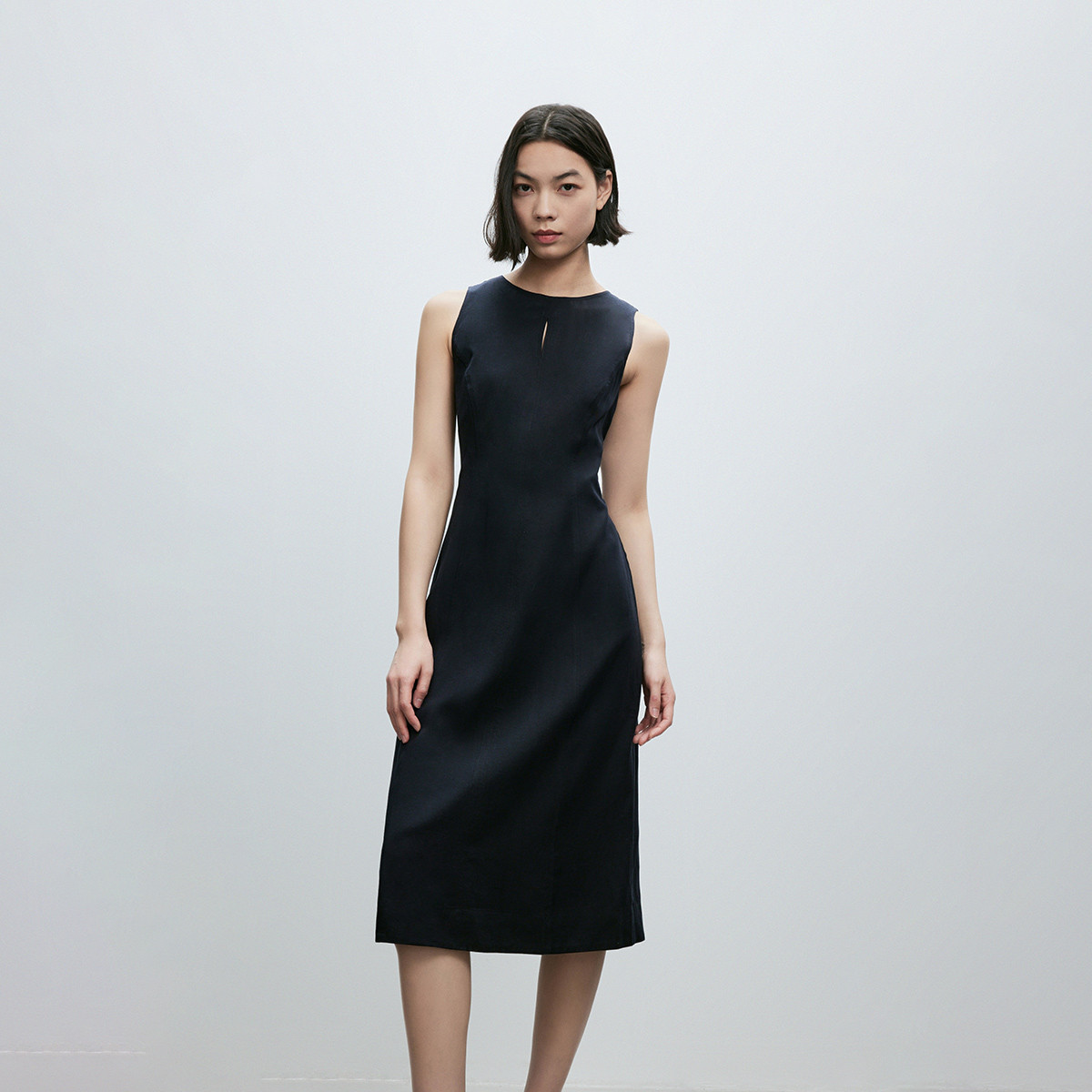 【直身剪裁】2025春季优雅气质纯色显瘦无袖中长裙连衣裙女 499802