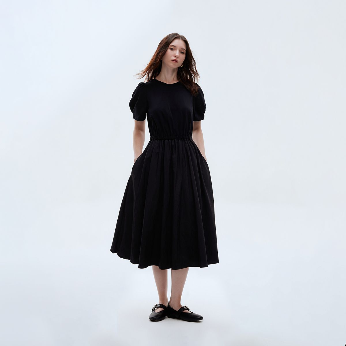 【小黑裙】2025春季优雅短袖泡泡袖中长裙连衣裙女 967770