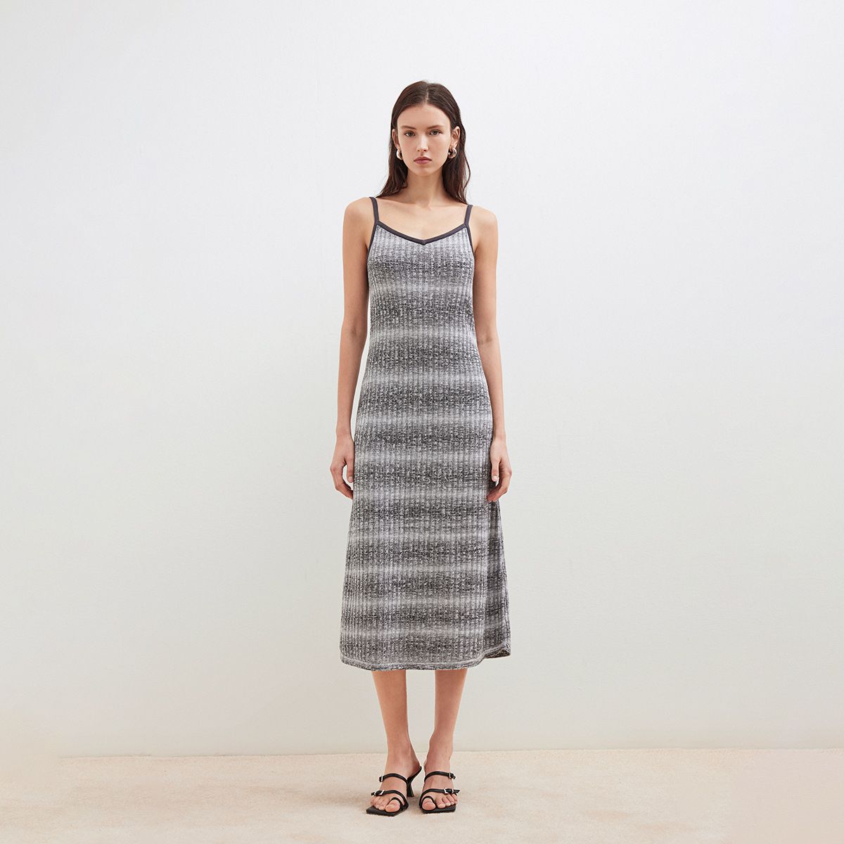 【显瘦坑条纹】2025春季优雅性感渐变条纹吊带针织裙连衣裙女 627738