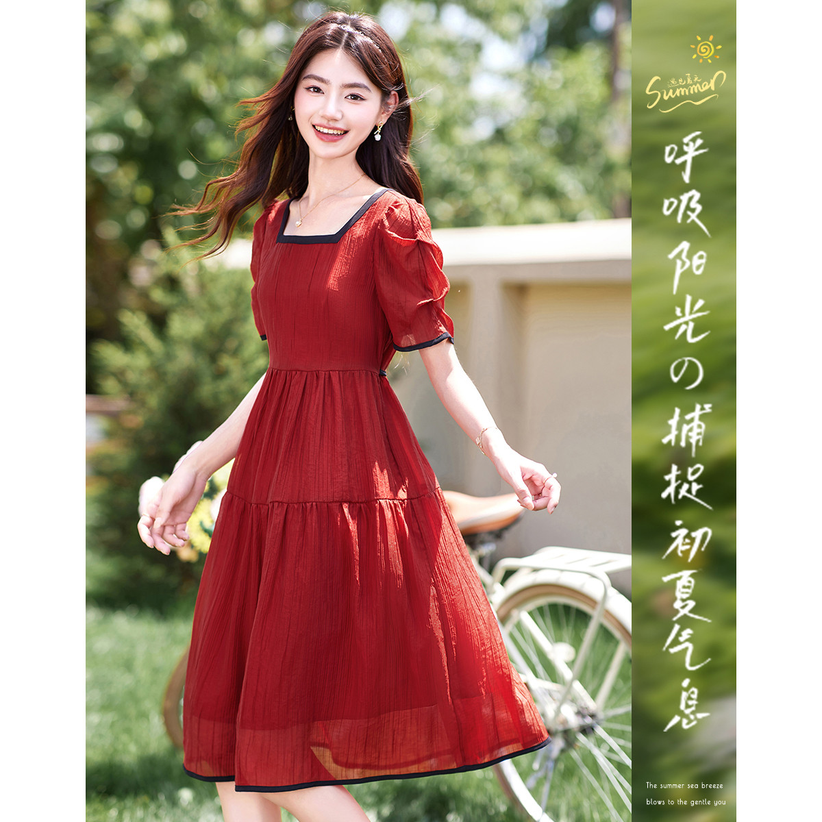 【夏日穿搭】设计感小众时尚气质显瘦小个子连衣裙 245528