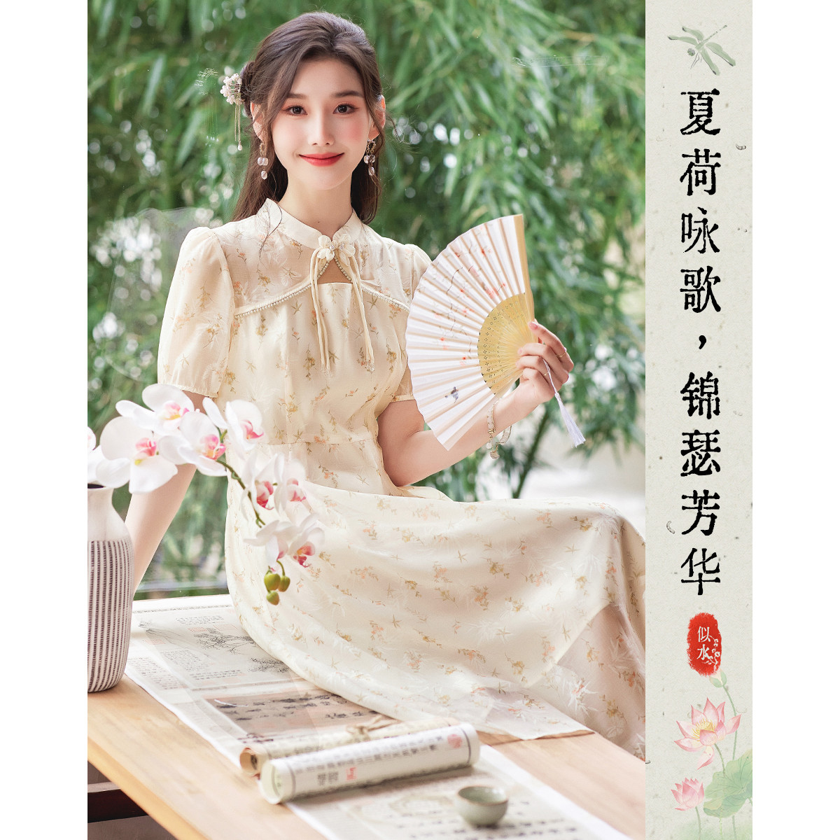【花影摇曳】夏高级感改良旗袍设计感新中式显瘦小个子连衣裙 261912