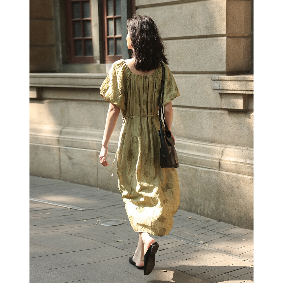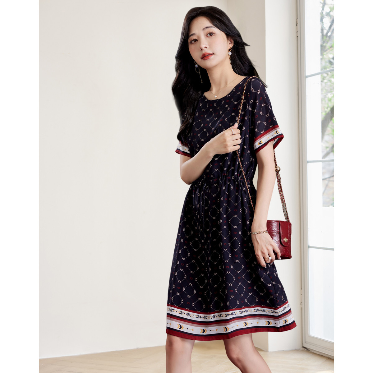 【古典派艺术】夏圆领桑蚕丝调节要抽绳印花连衣裙 583489