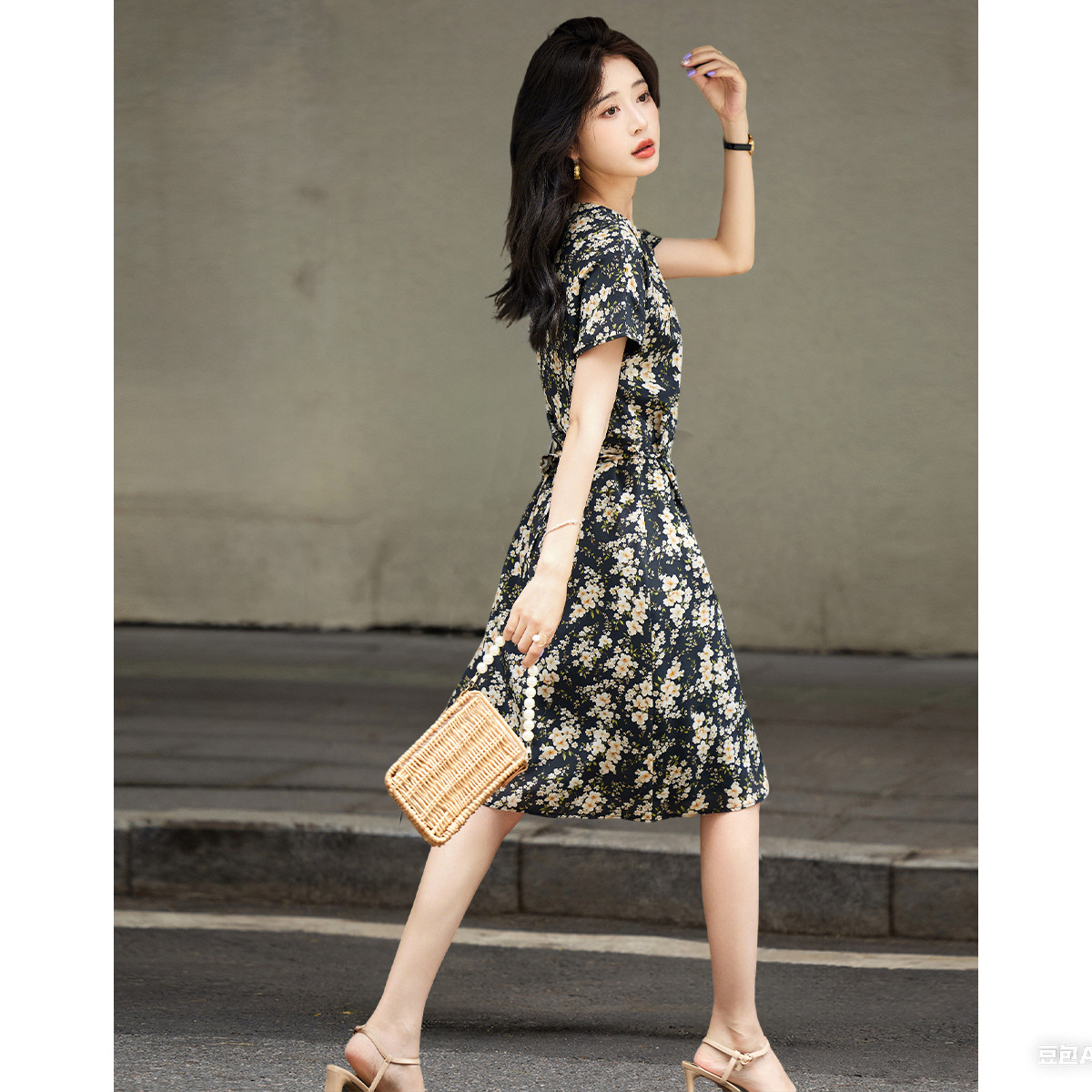 【商场同款】暗香疏影连衣裙女式长裙碎花裙显瘦A字裙夏季短袖女 377878