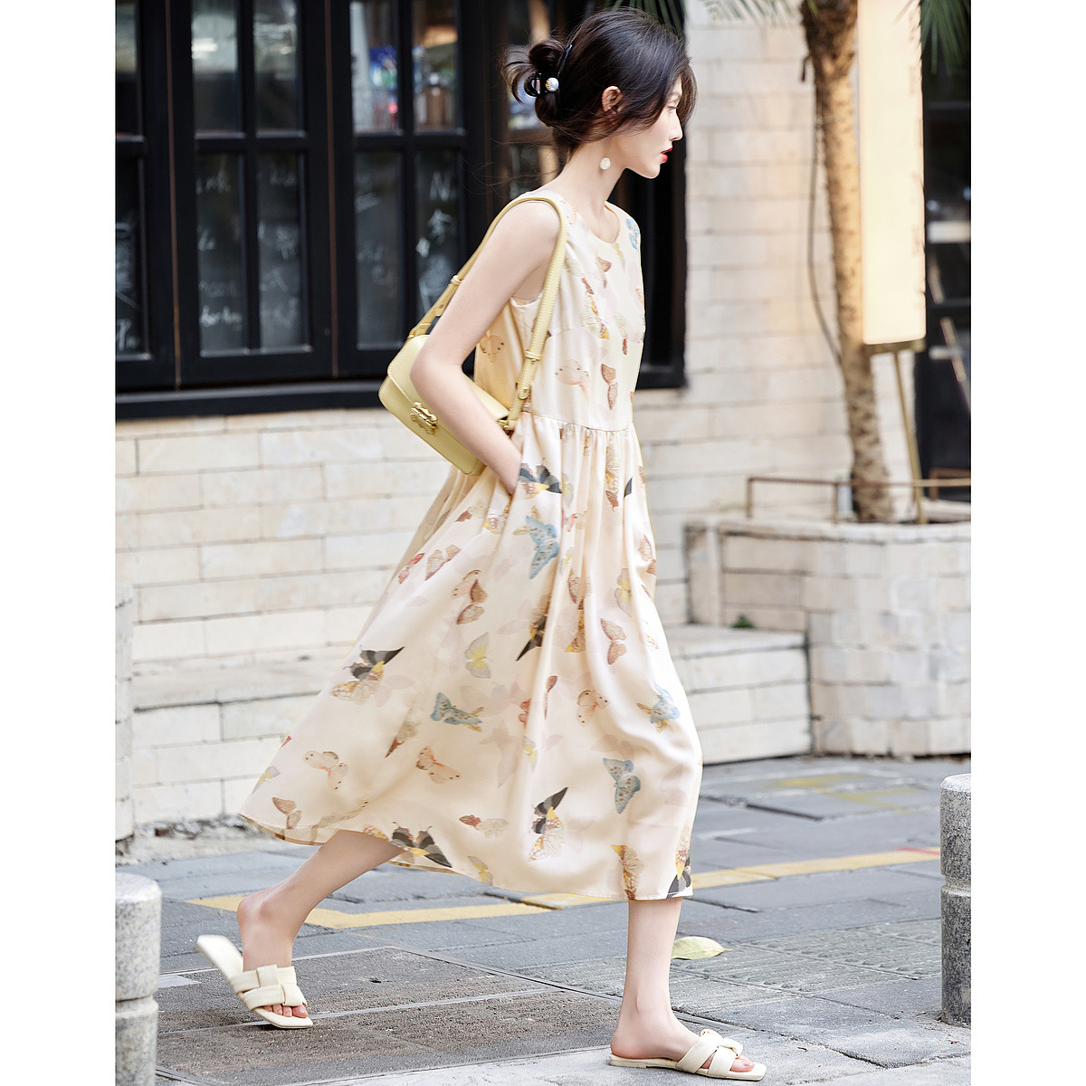 【重磅桑蚕丝】夏轻奢圆领直筒印花背心连衣裙女中长款 446721
