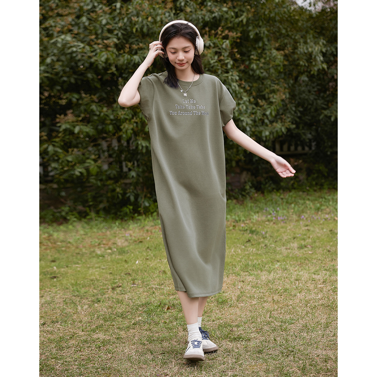 【个性泡泡袖长裙】夏鼠尾草套头字母印花显高连衣裙 877954