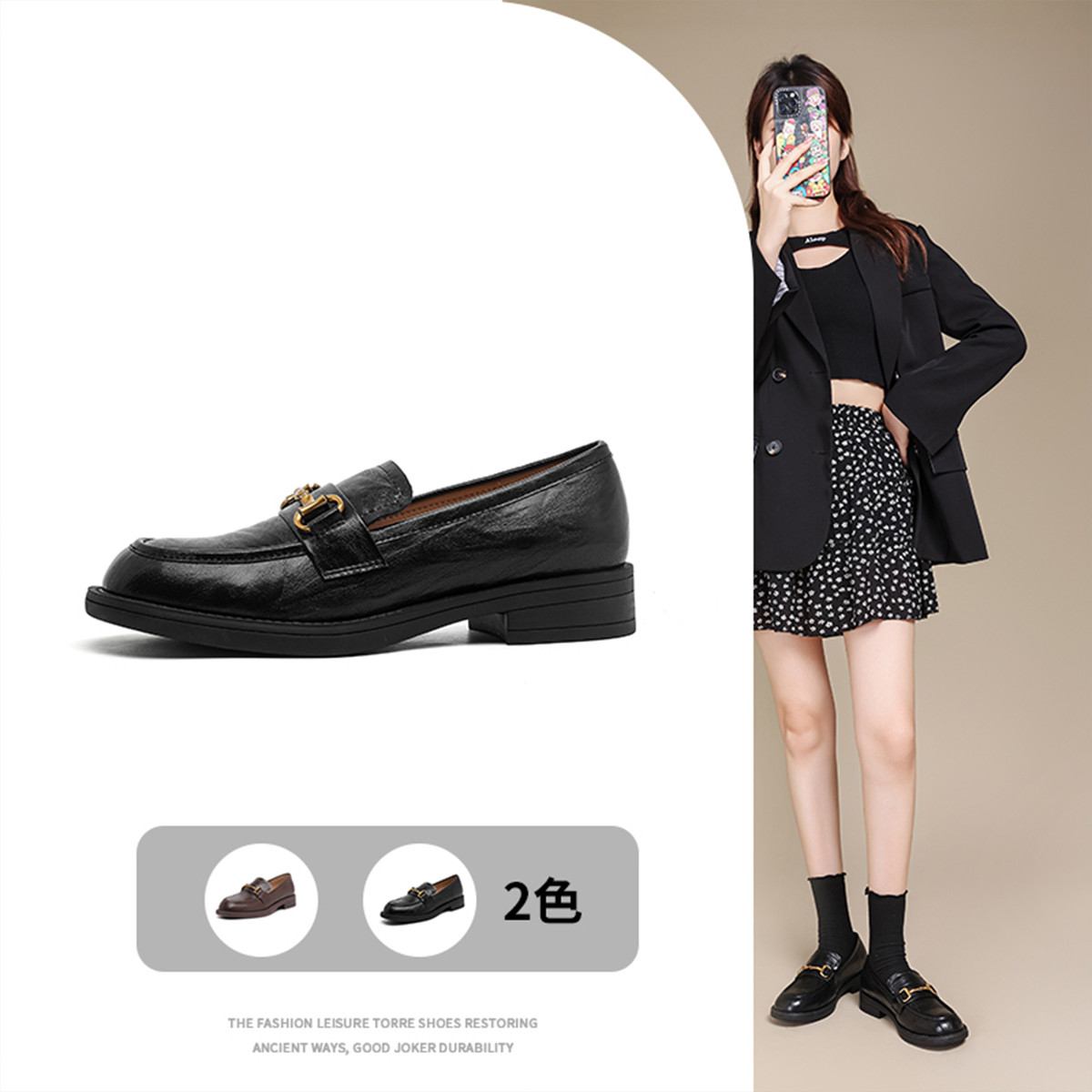 时尚韩系复古干枯玫瑰马鞍扣简约通勤乐福鞋女单鞋 181953
