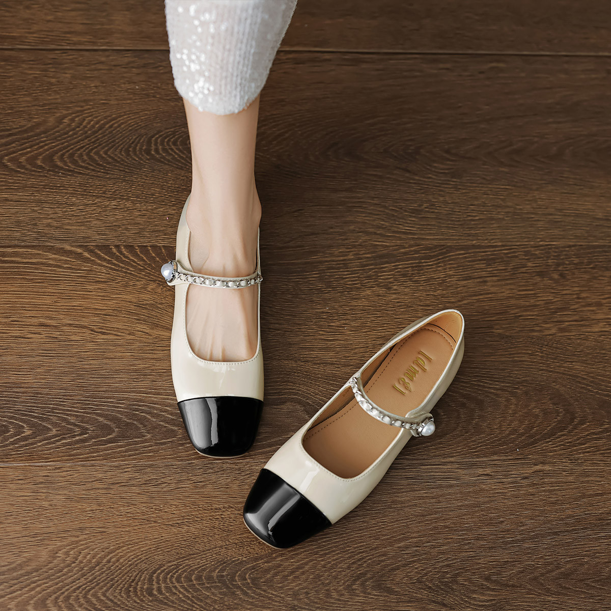 舒适百搭日常通勤经典黑白撞色镜面玛丽珍女单鞋 186049