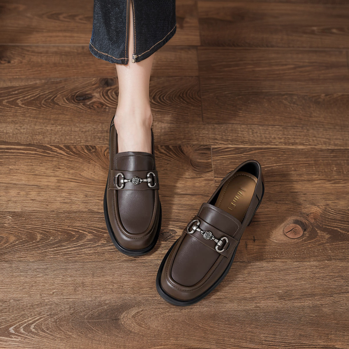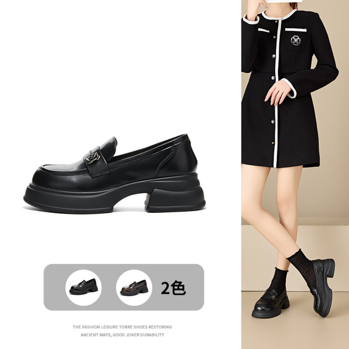 【头层牛皮】金属搭扣增高小皮鞋2025春季厚底乐福鞋女单鞋 393344