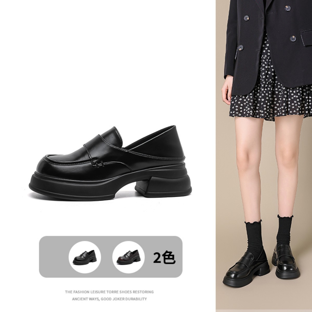 浅口乐福鞋女春夏百搭时尚粗跟单鞋英伦风百搭通勤鞋厚底鞋JK鞋 720535