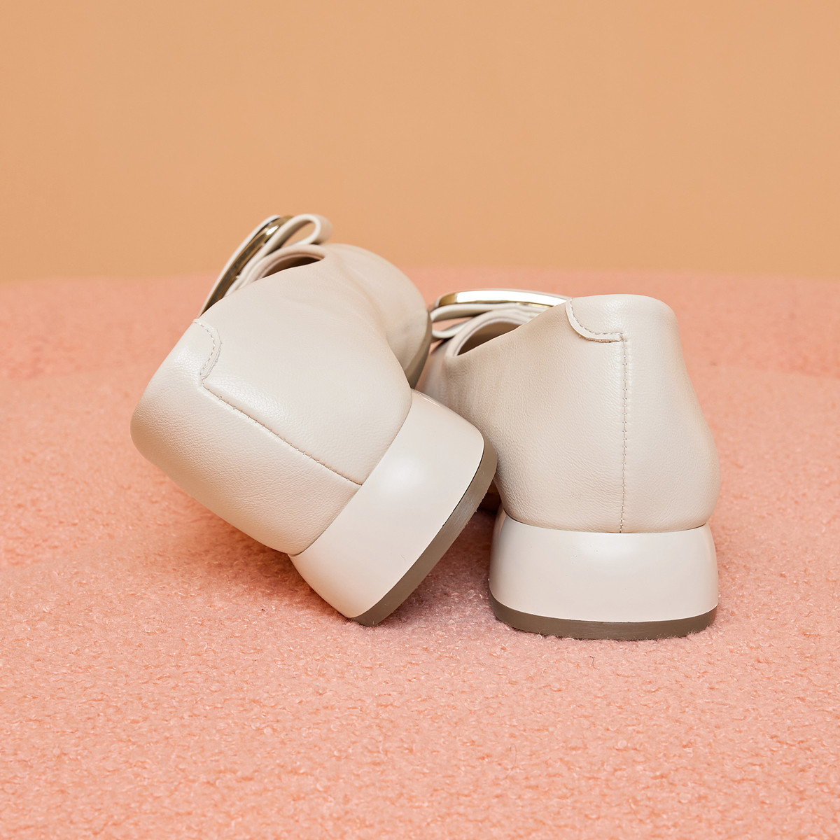 2024秋季简约百搭日常通勤方头拼接蝴蝶结装饰女单鞋 374465