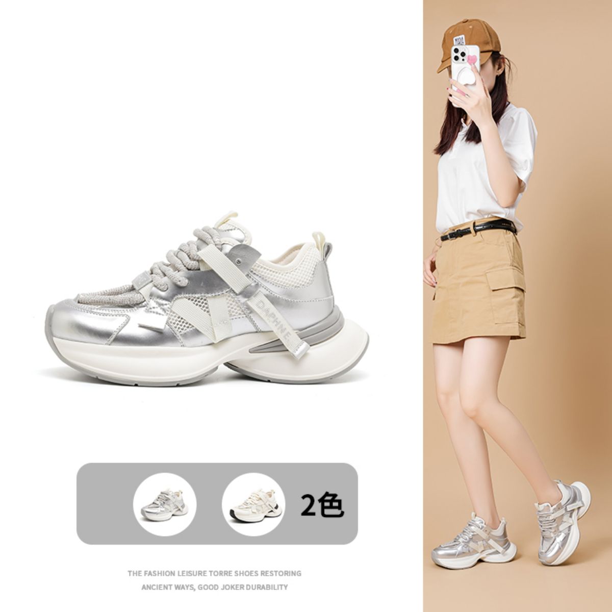 【增高厚底】轻便网面时尚老爹鞋女鞋2025春季新款休闲运动鞋 886679