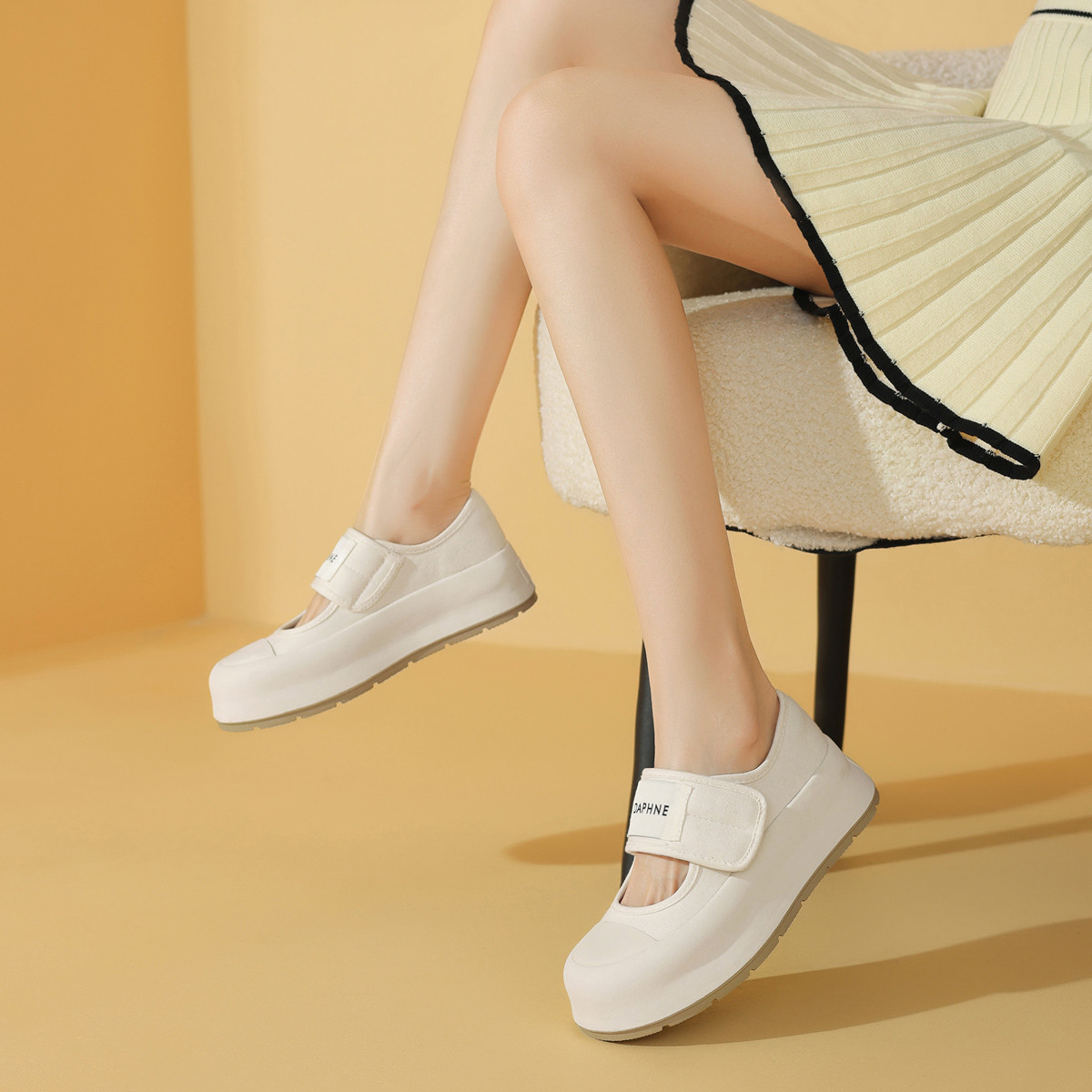 厚底帆布鞋女春秋2025新款复古玛丽珍女鞋子透气百搭小白鞋女 342615