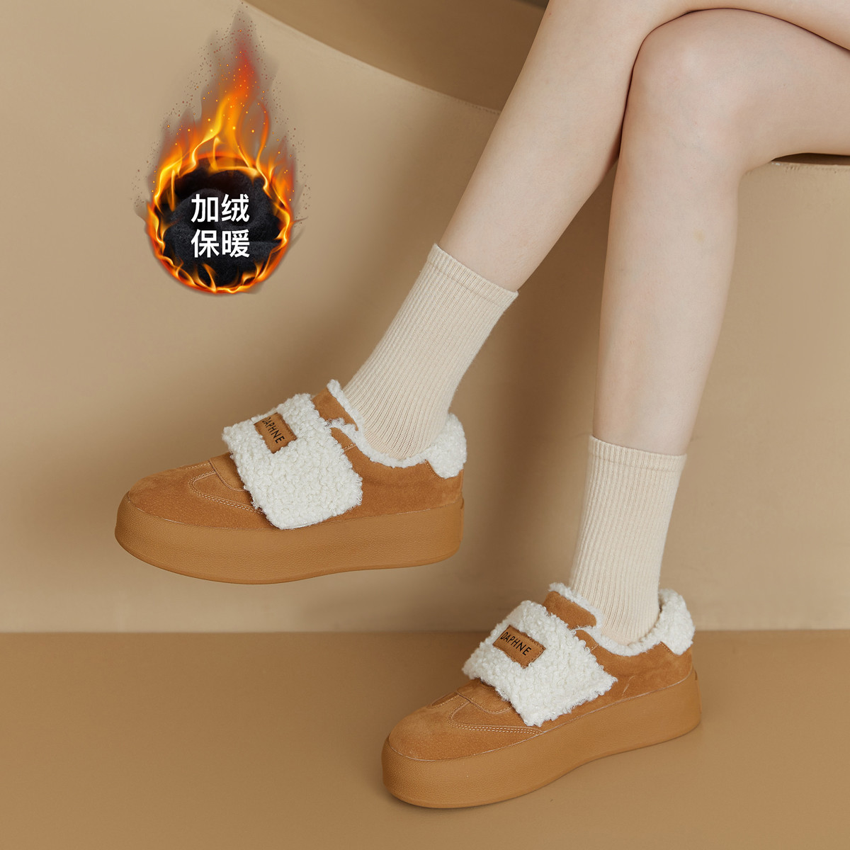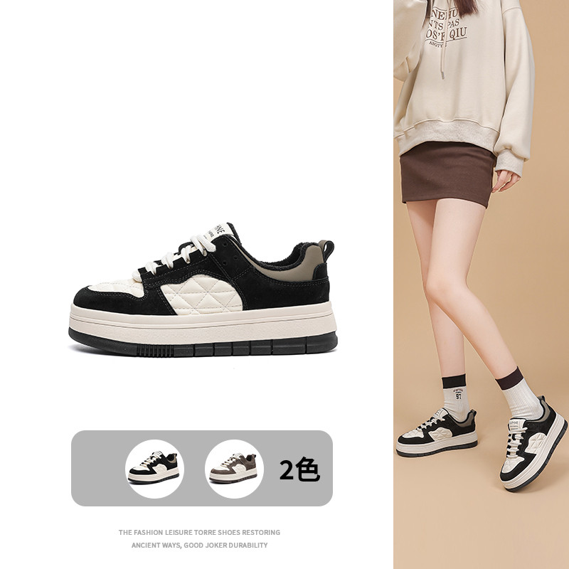 秋冬加绒厚底时尚板鞋增高鞋百搭运动休闲鞋舒适保暖简约风女鞋 277783