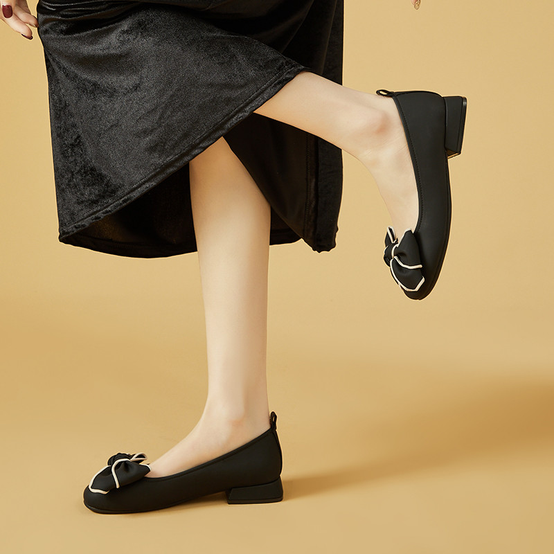 2024秋季简约百搭日常通勤方头拼接蝴蝶结装饰女单鞋 374465