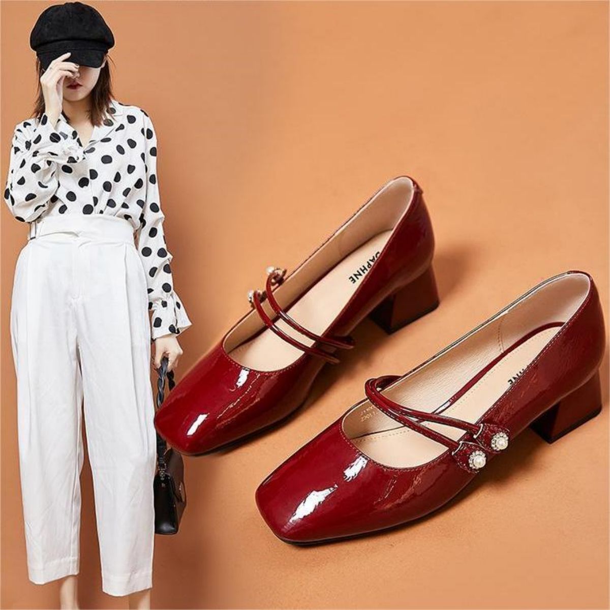 【水钻双扣】夏季红色婚鞋玛丽珍鞋女时尚单鞋百搭通勤鞋时装鞋 618007