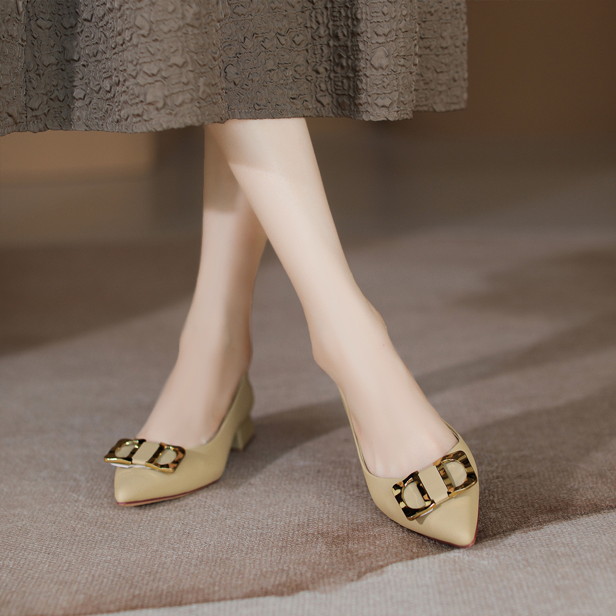 春秋时尚双D扣件矮跟浅口舒适女单鞋 440193