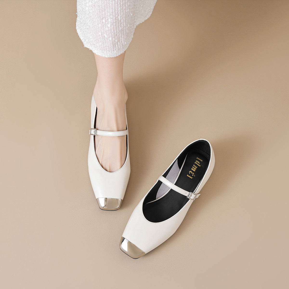 2024秋季简约时尚韩系金属小方头日常舒适百搭方跟玛丽珍女单鞋 526017