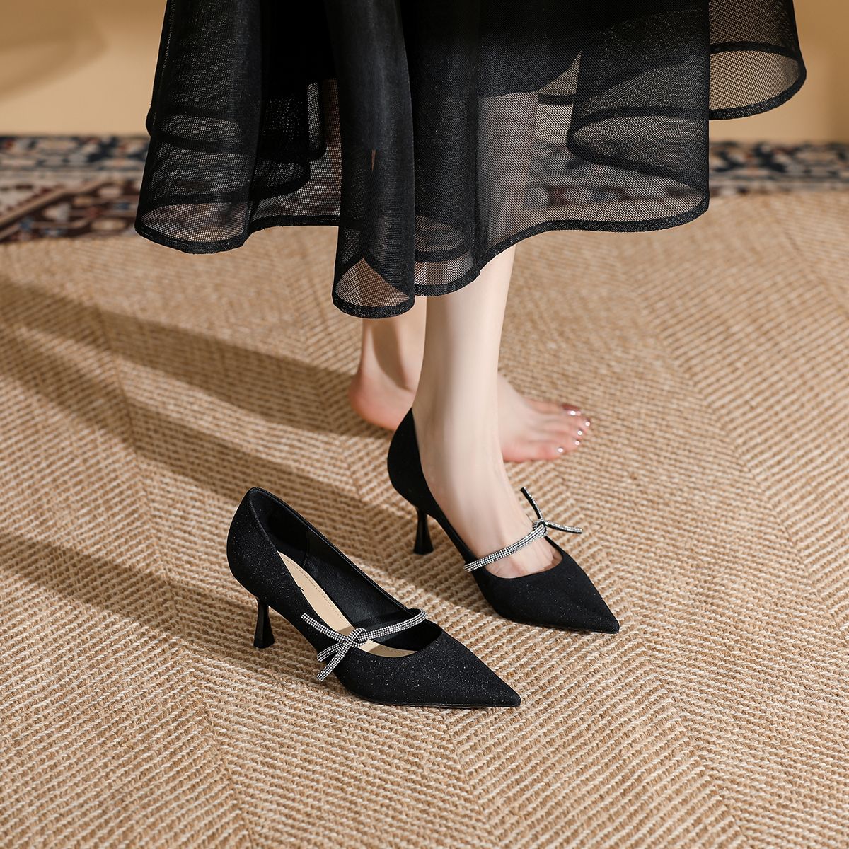 【热卖爆款】夏季女单鞋气质温柔高跟鞋通勤鞋蝴蝶结百搭时尚 546135
