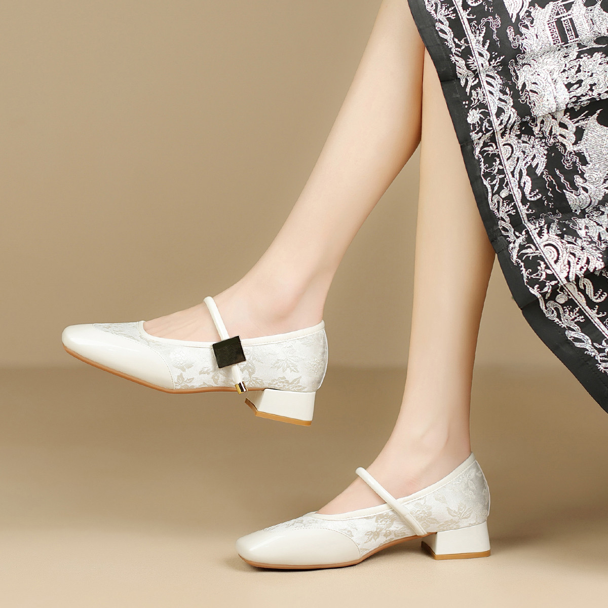 【质感方扣】新中式小皮鞋子气质通勤鞋夏季款玛丽珍鞋女单鞋女 052608
