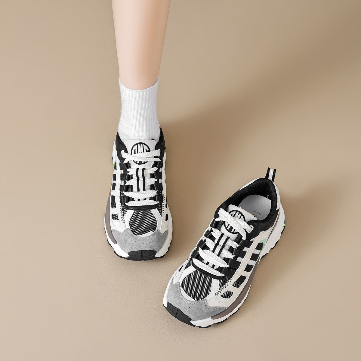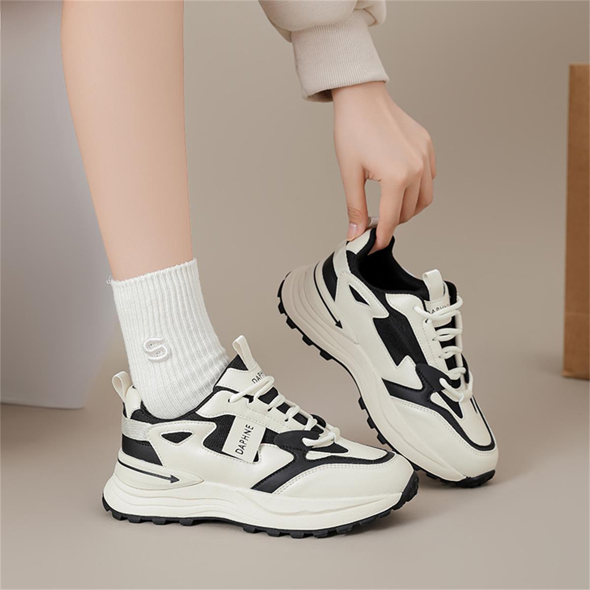 时尚撞色圆头拼接斜纹软底老爹鞋女休闲鞋 038593