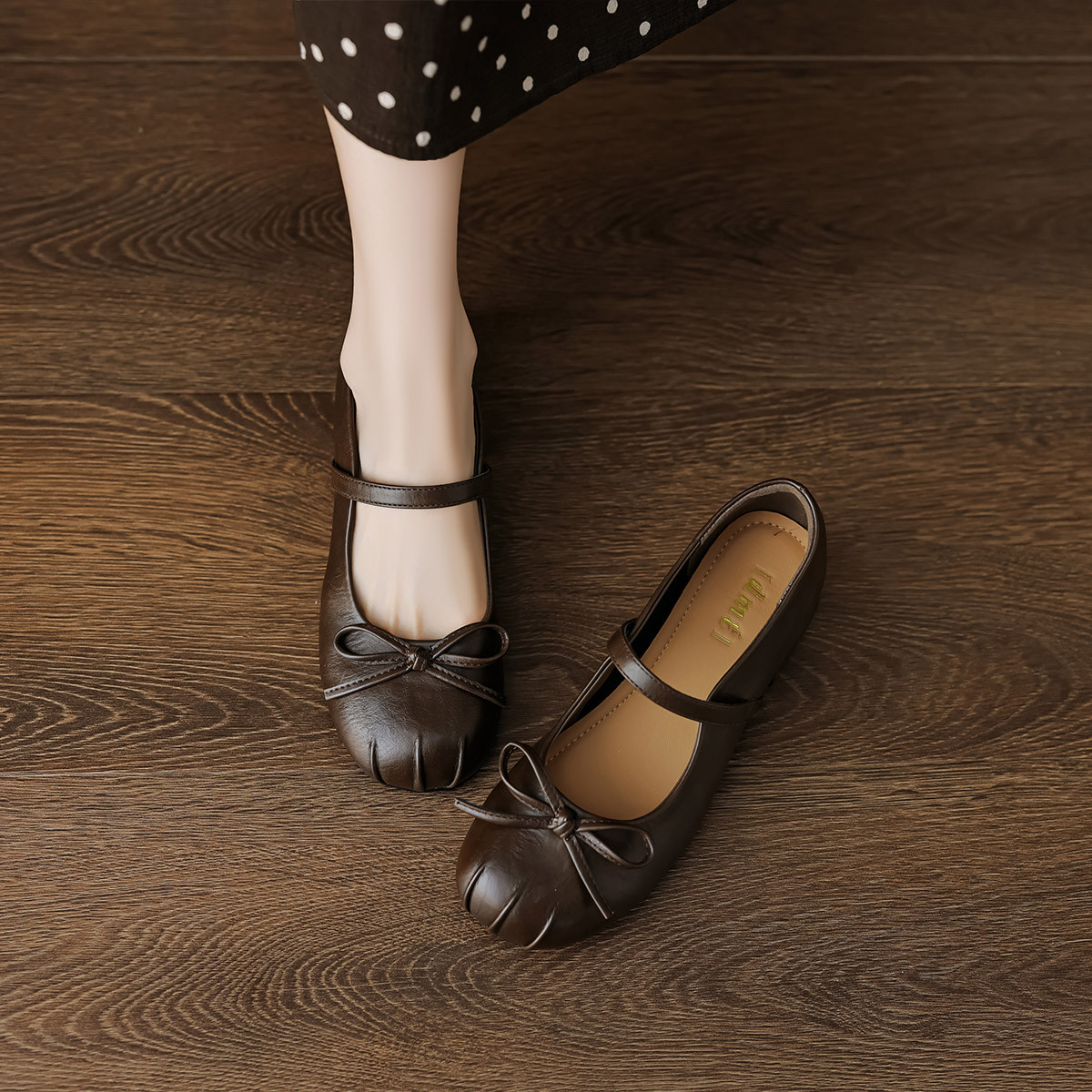 2024秋季简约百搭甜美蝴蝶结猫爪褶皱纯色圆头玛丽珍女单鞋 296641