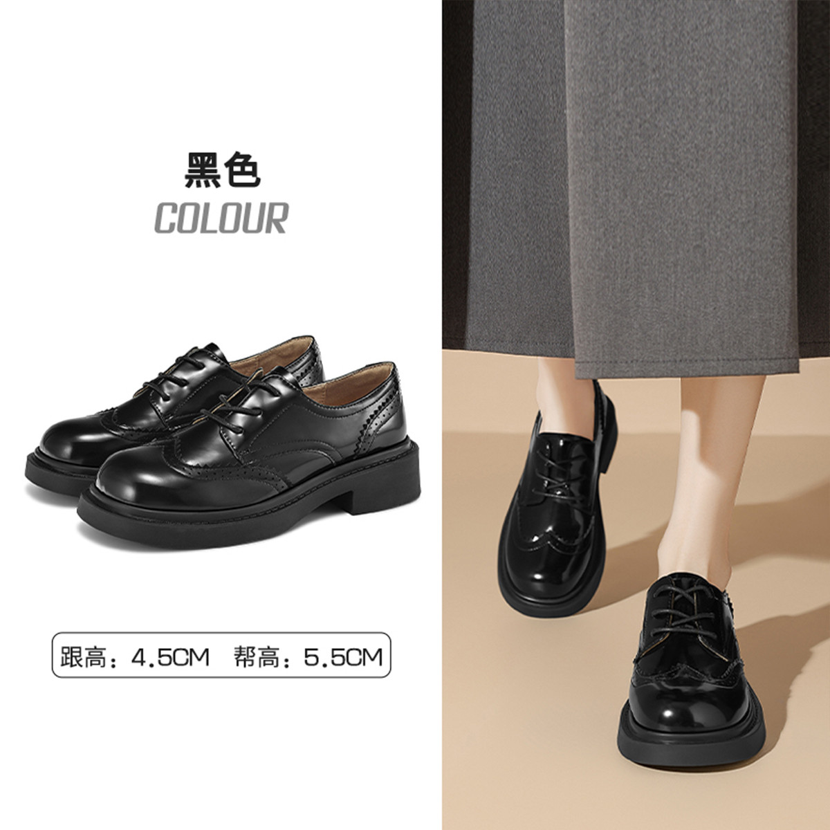 乐福鞋女春夏百搭布洛克鞋女职场通勤鞋牛津鞋时尚系带单鞋厚底鞋 176279