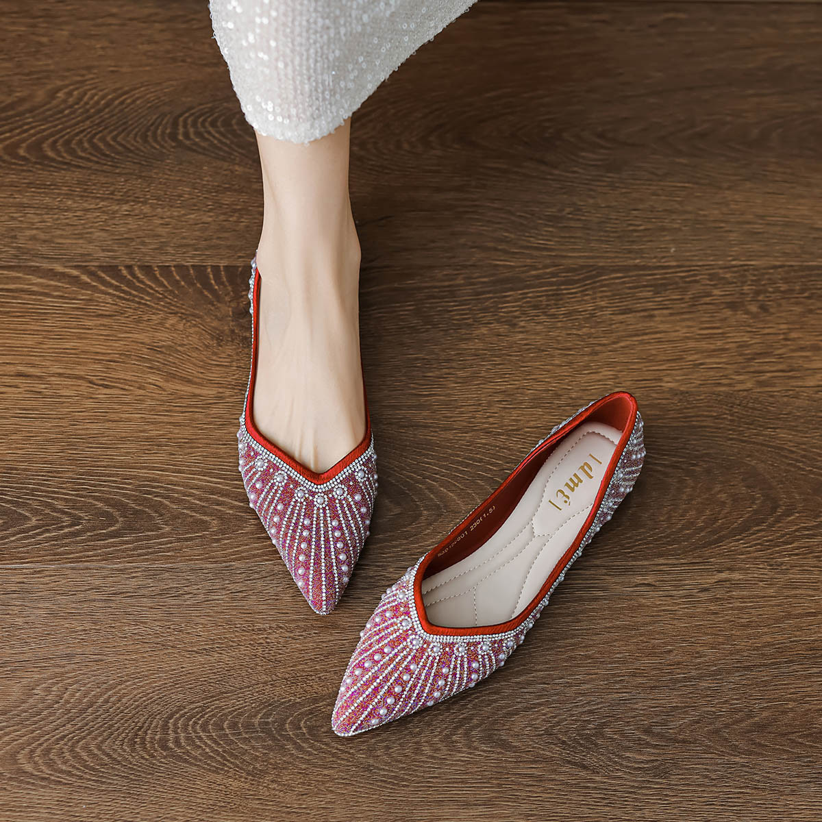 2024秋季简约高级感闪耀水钻温柔珍珠舒适平底婚鞋伴娘鞋礼服鞋 399041