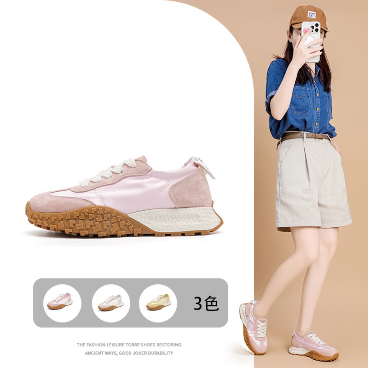 春夏款德训鞋女百搭复古风时尚板鞋厚底鞋舒适透气运动休闲鞋 187223