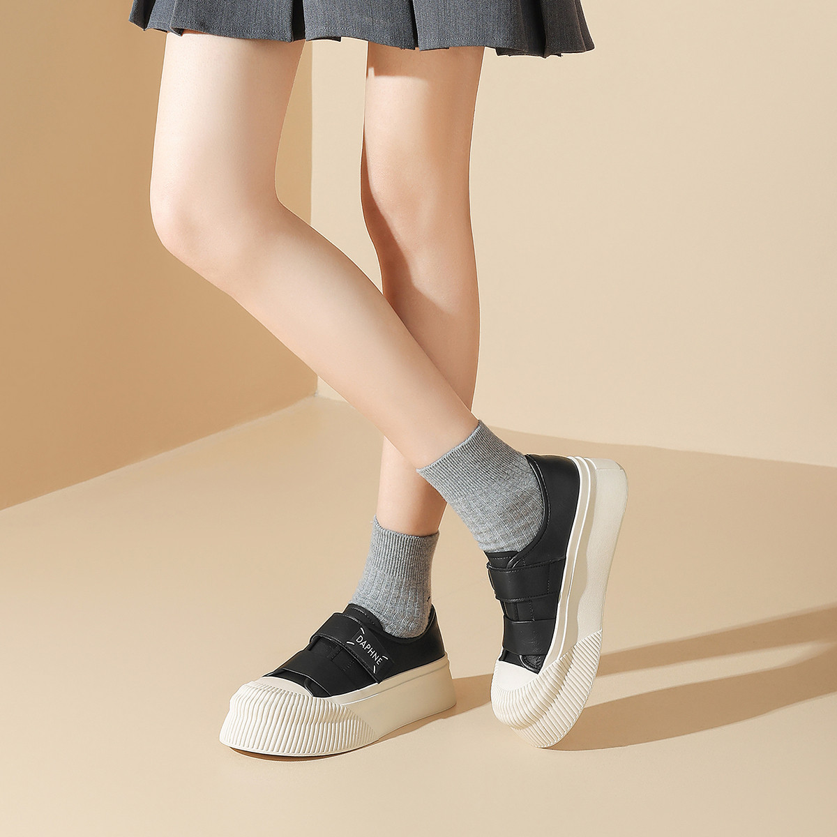 春季复古百搭时尚饼干鞋厚底增高休闲运动板鞋魔术贴小白鞋女鞋 730394