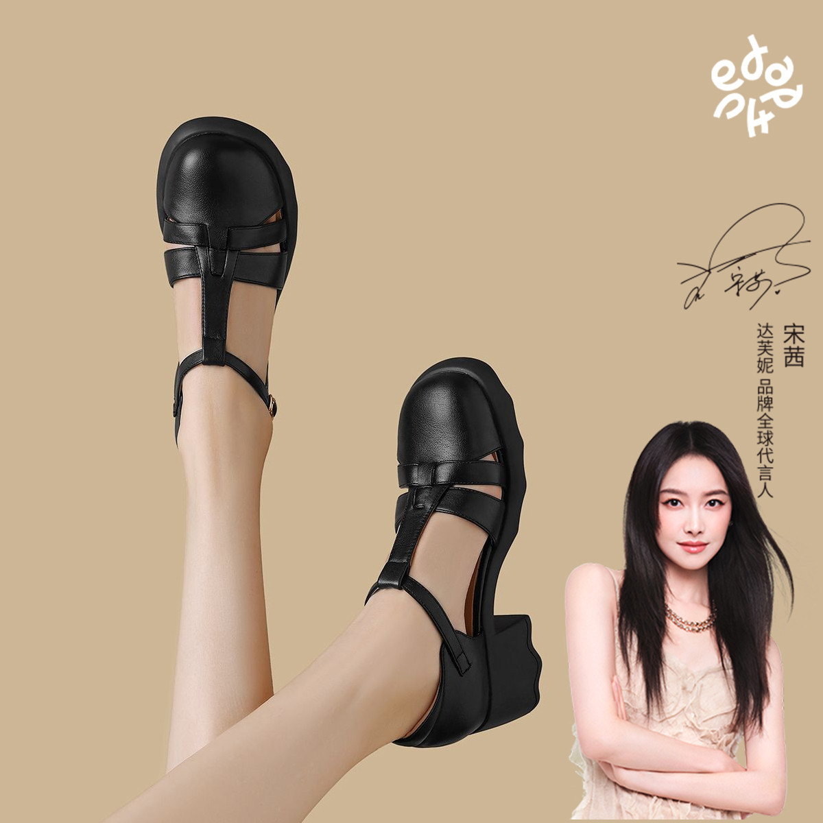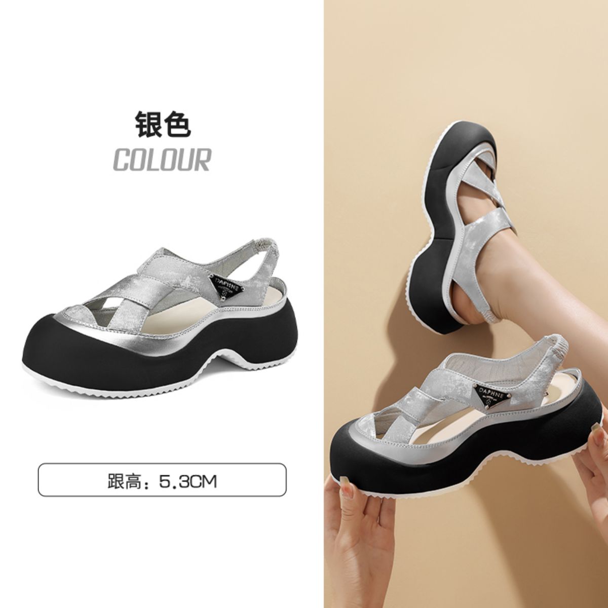 罗马凉鞋女夏季粗跟增高中空凉鞋女包头单鞋猪笼鞋透气舒适通勤鞋 103703