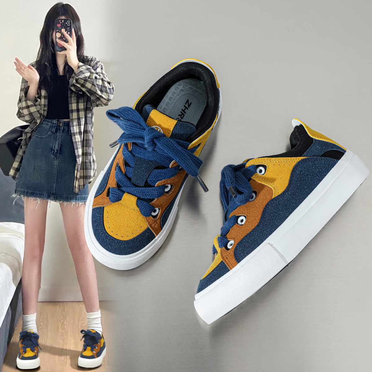 情侣鞋【复古拼接】面包鞋耐磨时尚休闲鞋舒适百搭厚底女板鞋女鞋 170944