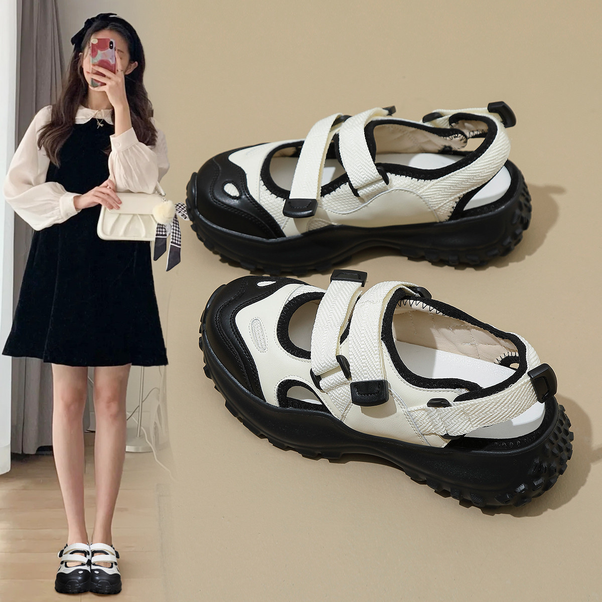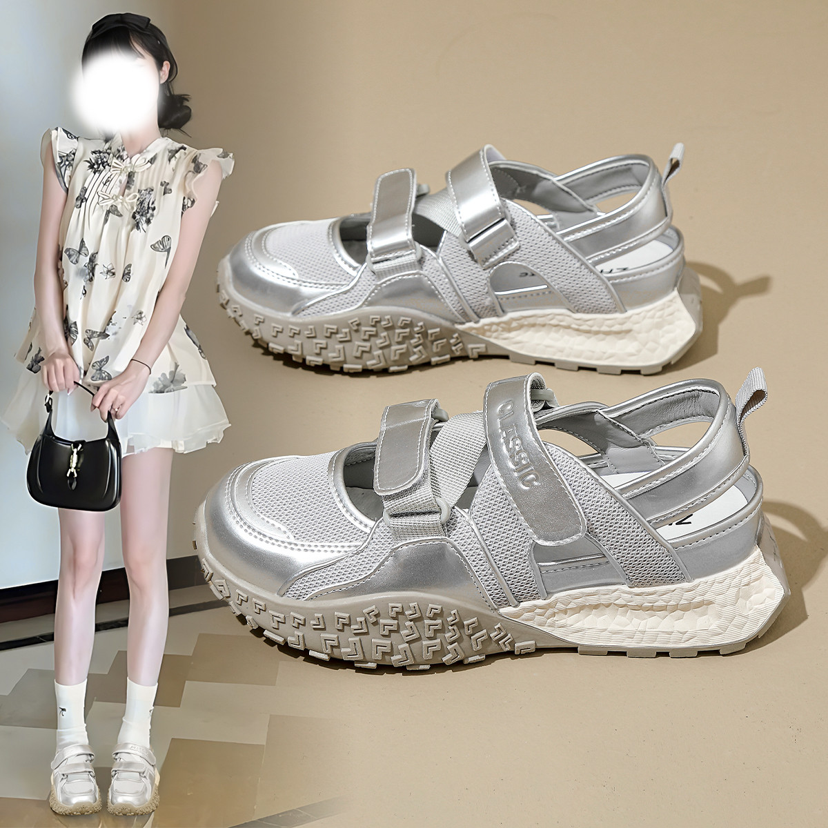 【增高显瘦】魔术贴设计休闲运动鞋夏季薄款透气溯溪鞋百搭女鞋子 185856