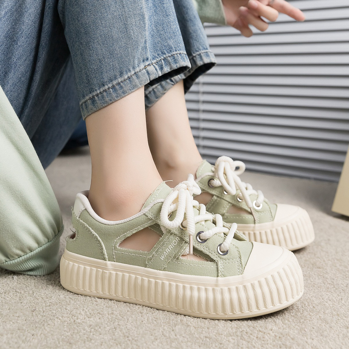 【镂空帆布鞋】25夏季款女鞋厚底增高板鞋女舒适百搭休闲鞋女 489812