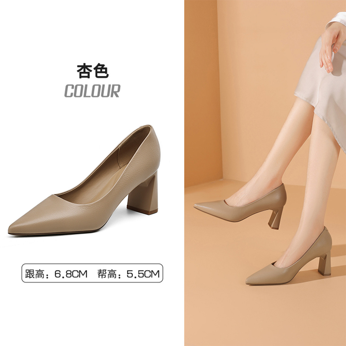 夏季气质高跟鞋女一脚蹬百搭职场通勤鞋粗跟浅口时尚女单鞋时装鞋 001751
