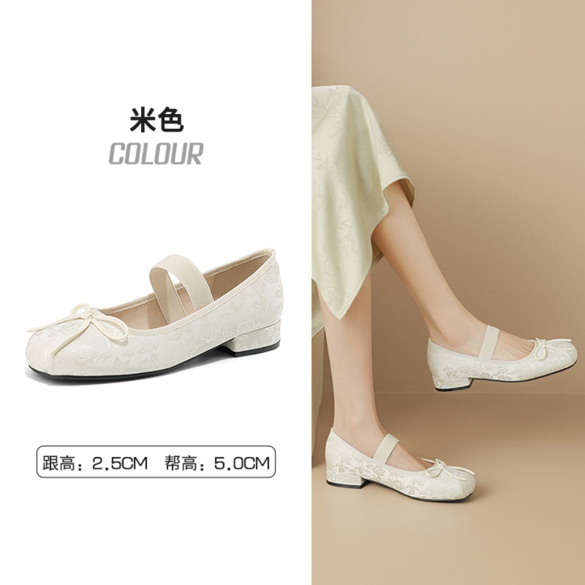 夏季新中式国风玛丽珍鞋女蝴蝶结时尚单鞋浅口轻便通勤鞋平底鞋 767383