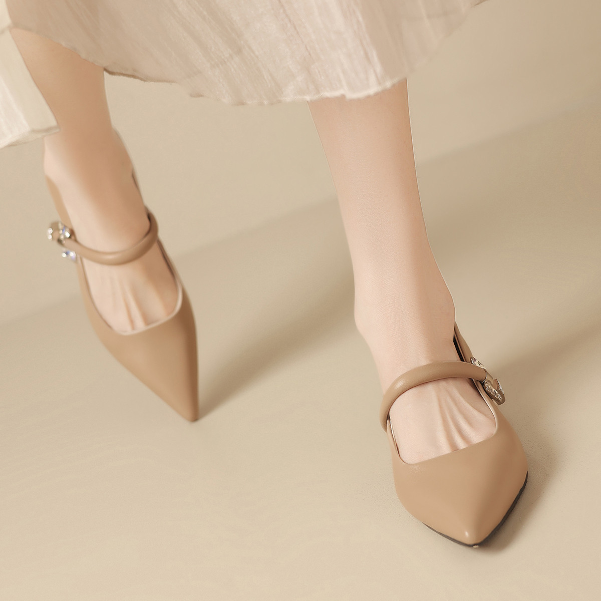 【气质尖头】玛丽珍鞋女2025新款夏季粗跟包头凉鞋女百搭女鞋 649047