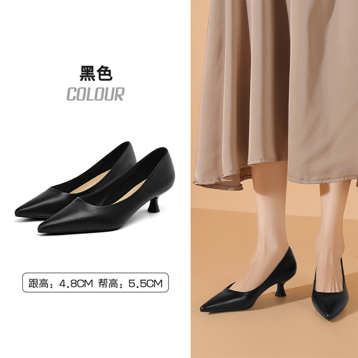 夏季浅口时尚单鞋女气质高跟鞋百搭职场通勤鞋细跟时装鞋女鞋 202455