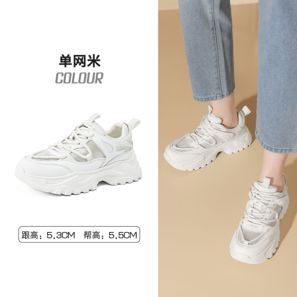 夏季透气轻薄小白鞋女百搭厚底老爹鞋网面舒适轻便运动休闲鞋女鞋 904599