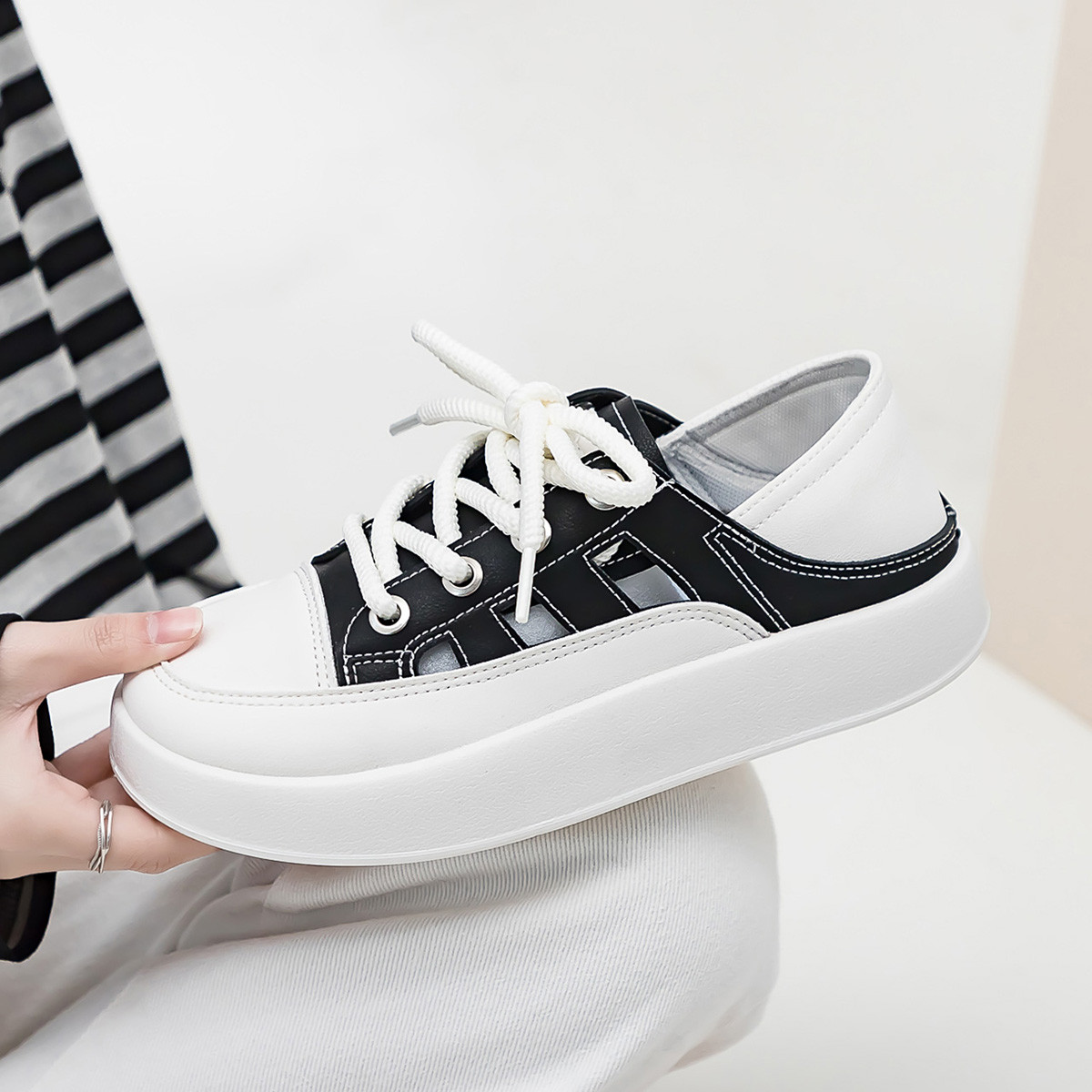 夏季透气轻薄女鞋百搭厚底时尚板鞋女镂空运动凉鞋日常休闲鞋 589527