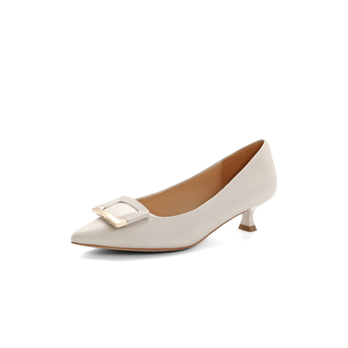 【爆款推荐】百丽方扣高跟鞋女春夏舒适羊皮革优雅细跟单鞋 491930