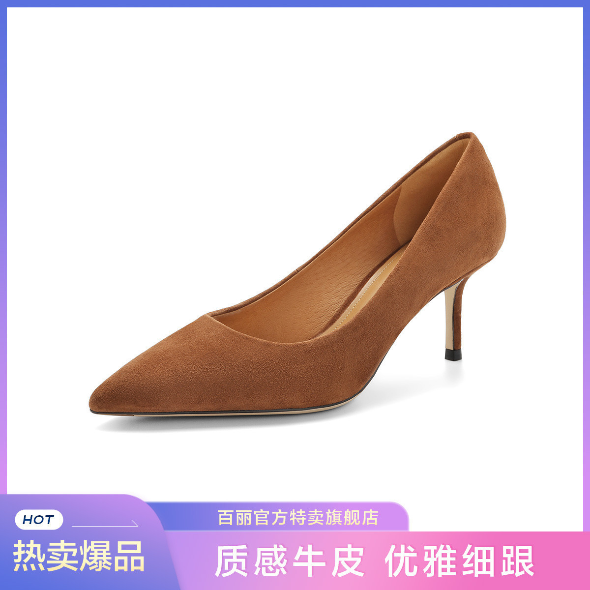 百丽优雅细高跟鞋女鞋子春夏春真皮婚鞋上班穿单鞋 955546
