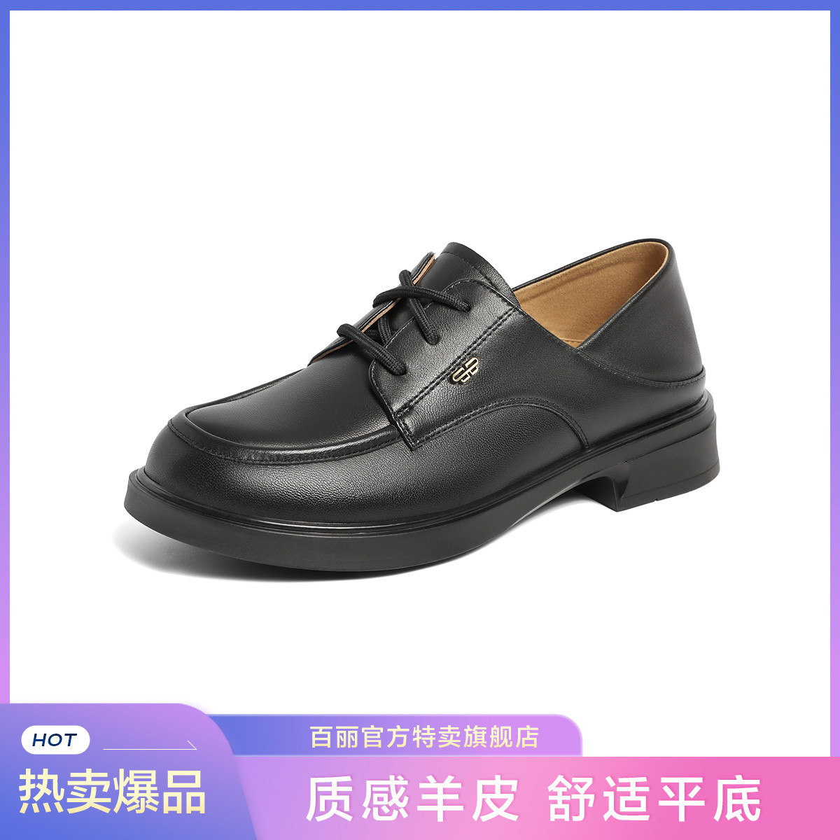百丽复古英伦风牛津鞋女鞋子乐福鞋软底小皮鞋单鞋 458586
